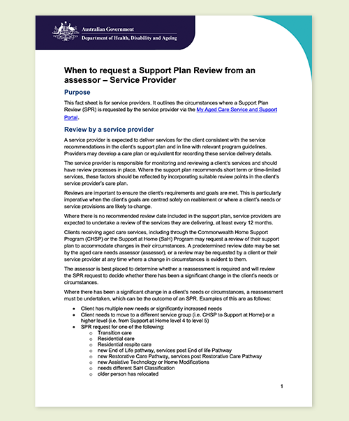 Clear guidance for providers about when to request a Support Plan Review